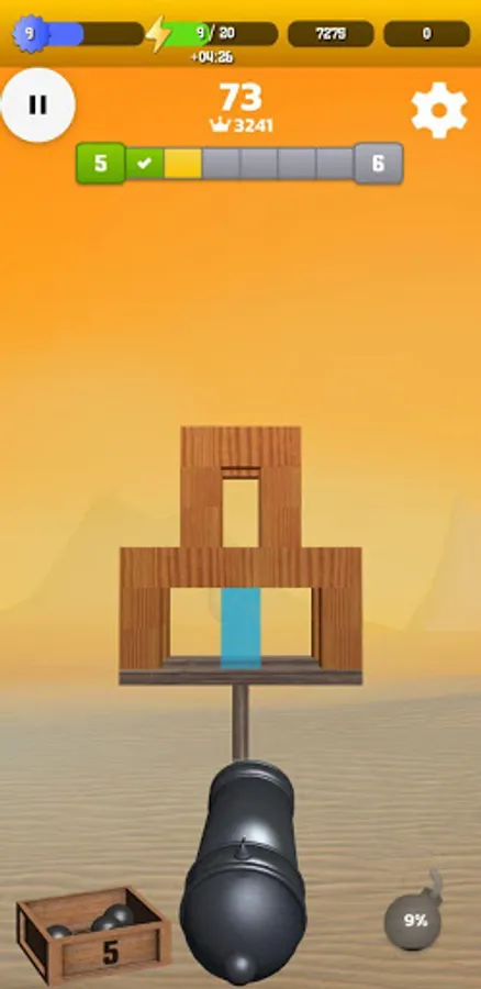In 'Cannon Balls 3D' it depends on how skillfully you place the shots so that the structures collapse as efficiently as possible. Watch your ammo, because it's limited.