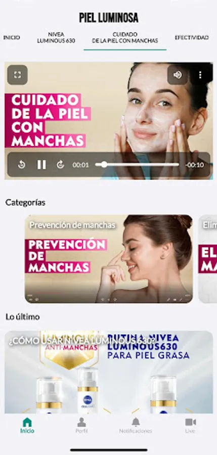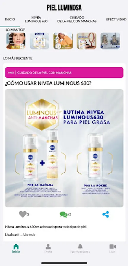 App created by Nivea to accompany your anti-stain treatment with Nivea Luminous 630 from the comfort of your cell phone.