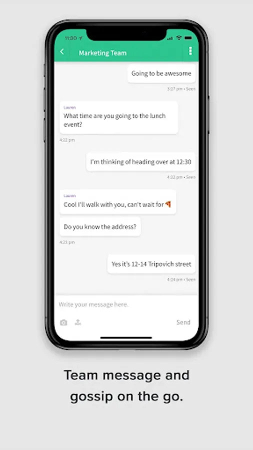 * Message and gossip in real-time - Built-in live group chat, so there’s no more polite emails to the folk you share a loo with.
