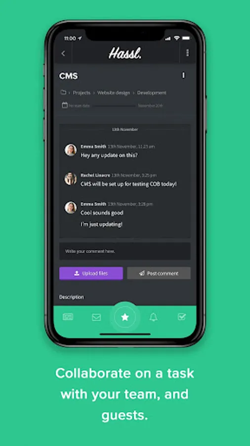 * Less team emails, more team conversations - Less team emails, more team conversations. Collaborate with teams and guests throughout your project to smash deadlines. Don’t know who’s doing what when? Yes you do, it’s on Hassl.