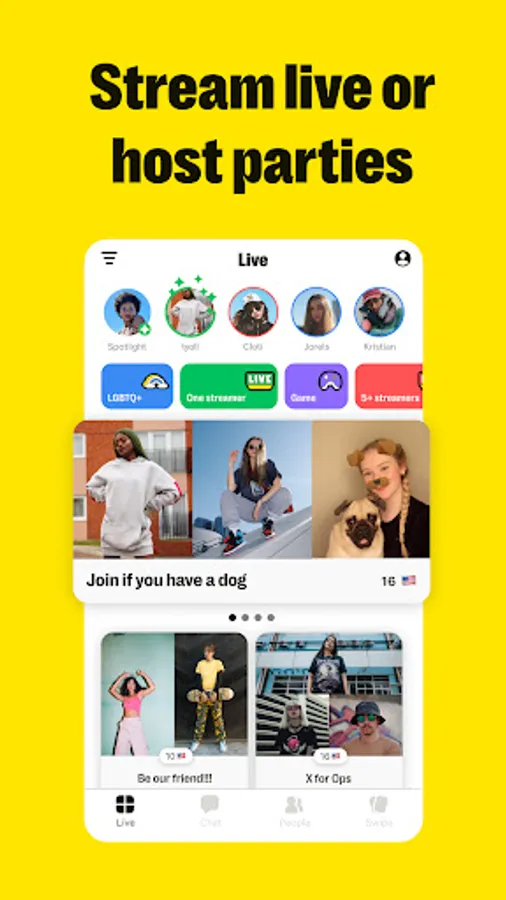 On Yubo, you can easily make friends – whether it’s from your local community or across the world and go social in no time through live chat.