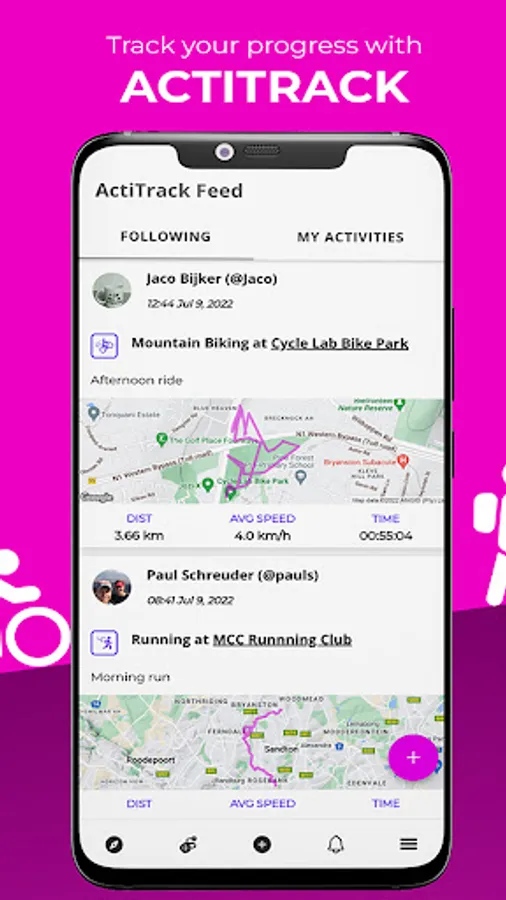 - Record, save, and share any of your activities. With ActiTrack you will see information like your distance travelled, average speed, time, and your breadcrumb trail. Your activities will be visible to all your friends.