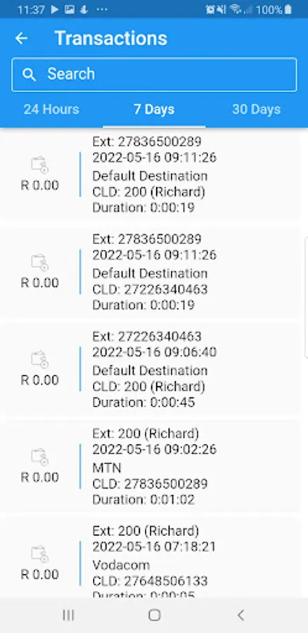 -Live Transaction information