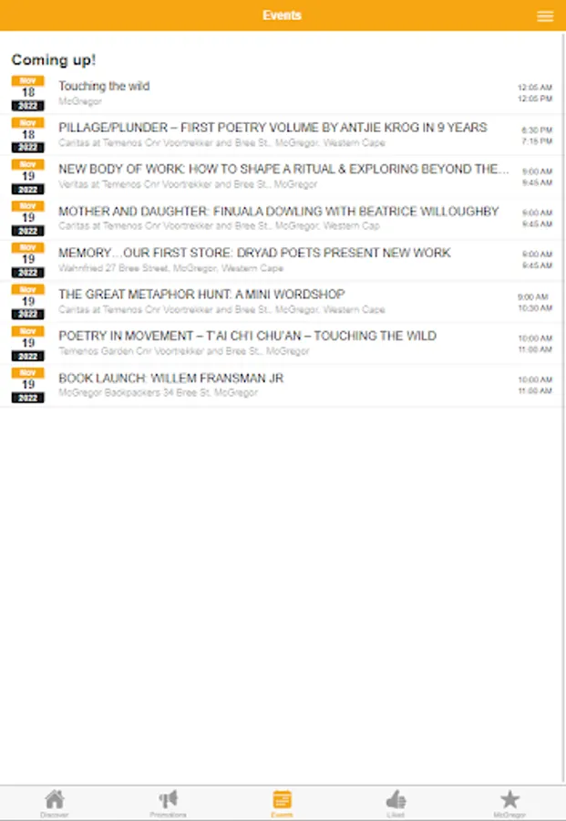 This app aims to provide a base for local and international users to explore and visit the beautiful town of McGregor and what the local businesses has to offer. This app includes a mapping functionality to help direct users to businesses and provides so much content of events that occurs in McGregor.