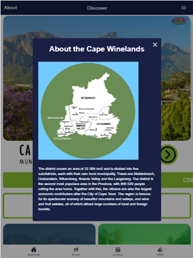 The Cape Winelands District Municipality is situated in the Western Cape Province and is one of 44 district municipalities in South Africa.