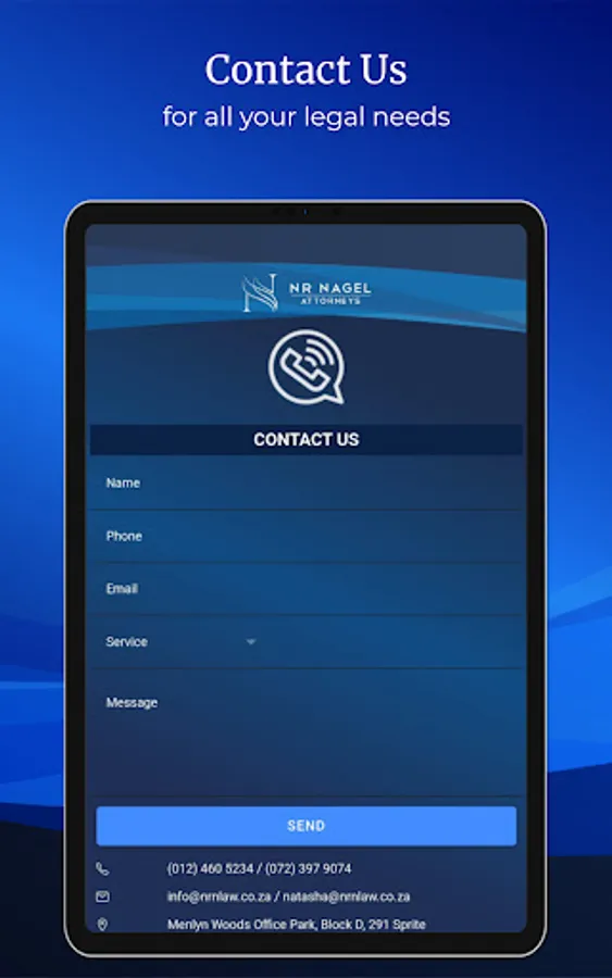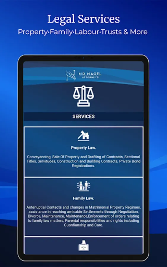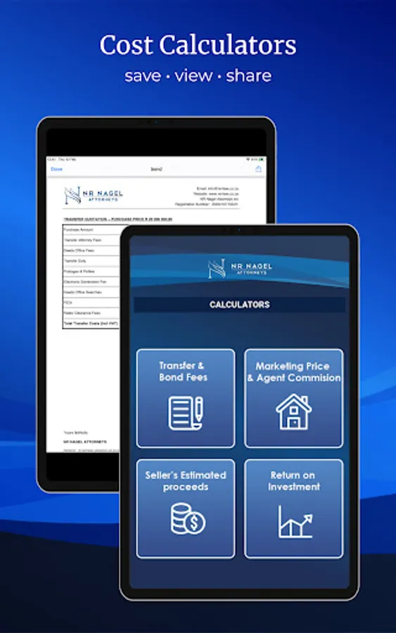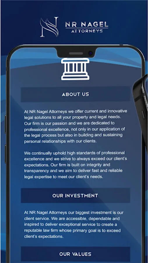 The NR Nagel Attorneys App is designed for property owners and estate agents. Our biggest investment is our client service and we strive to provide a turn key solution to your property related queries in the palm of your hand.