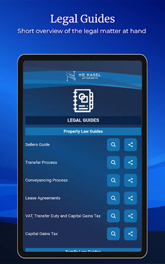 Legal Guides: Our legal guides provide a short overview of the legal matter at hand and can be viewed, saved in PDF and shared via Email, WhatsApp and other platforms.