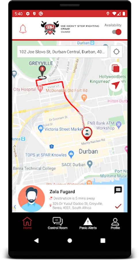GBH Security - Guard is the app used by GBH Security personnel that form part of the first responders. This is used as the method of communication between the responders and the control room that dispatches to events where assistance is required.