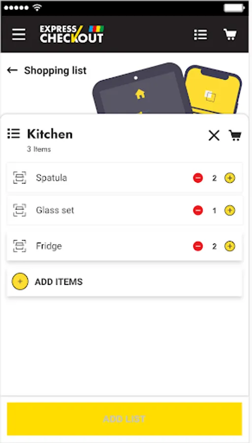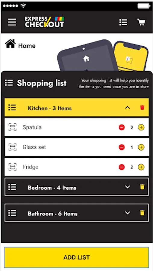 Use the Shopping list feature to preplan your shopping. Once you are in-store, select each item on your shopping list, scan the actual item and it will be added to your basket.
