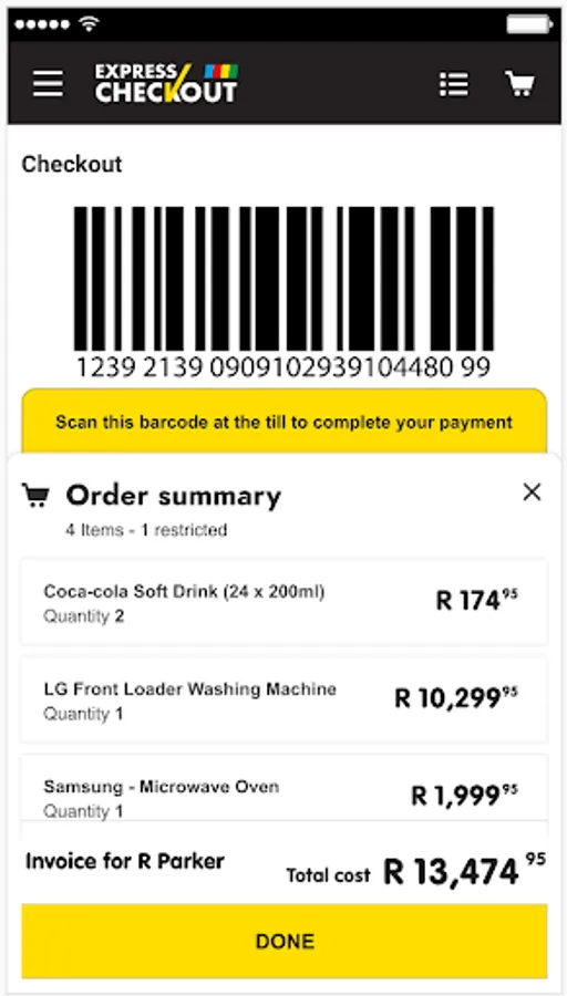 As you add each item to your trolley, scan them using the app. Once complete, press the checkout button on the app and a barcode will be produced. Go to our Express Checkout counters and show the barcode to our cashier.