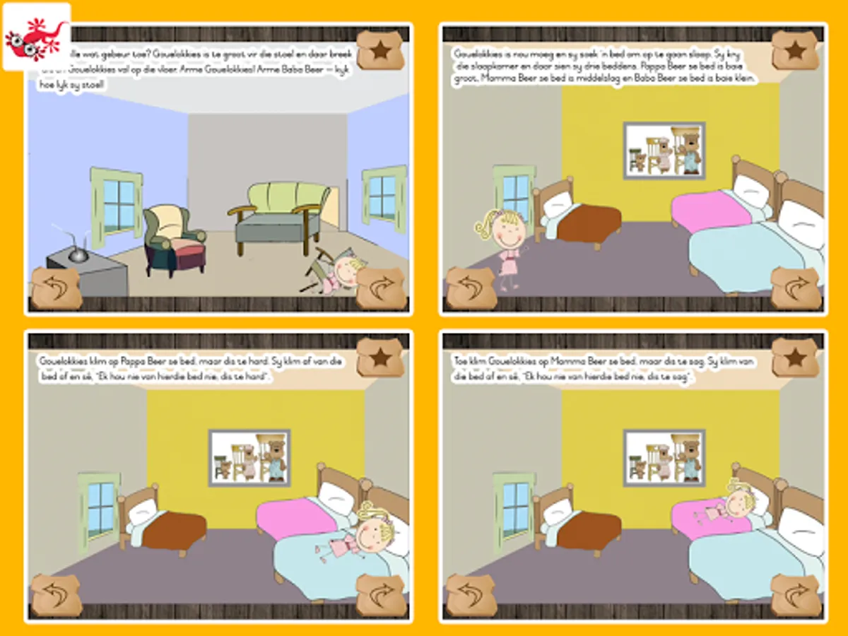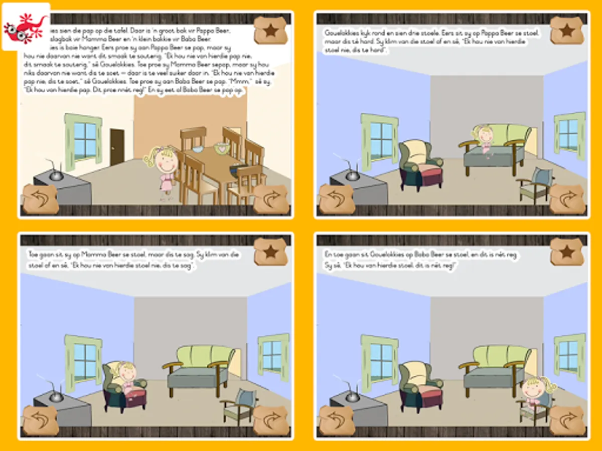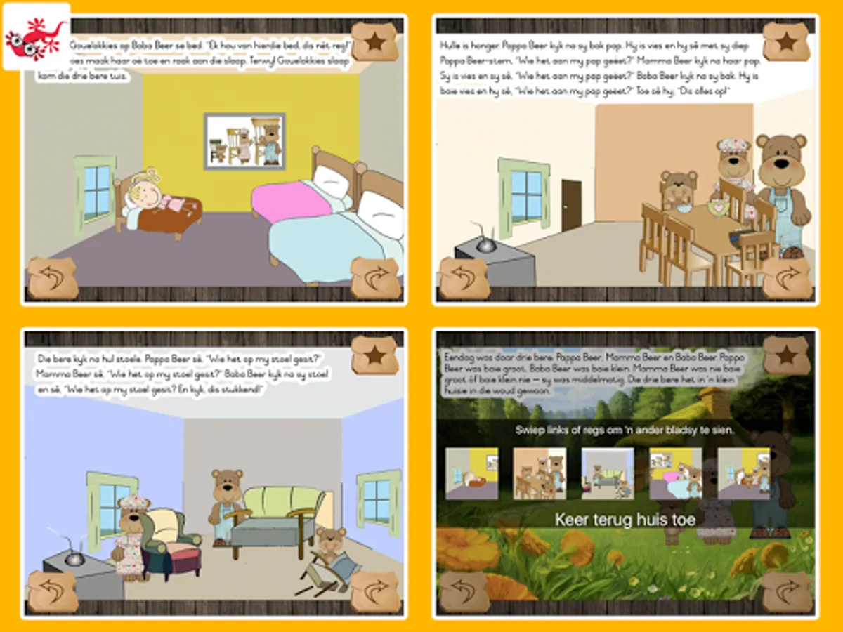 Goldilocks and the three bears children's story in Afrikaans with colorful large illustrations, simple text, this is the perfect fairy tale series for preschoolers. Irritable small team's imaginations by little story aloud for them to read. The story can be read to you by a professional voice artist.