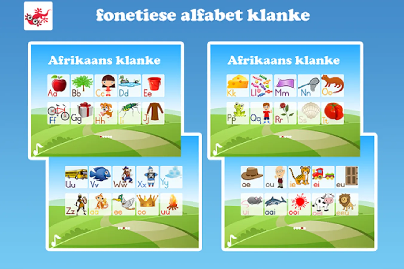 This African application contains the phonetic alphabet sounds, double sounds and triads.