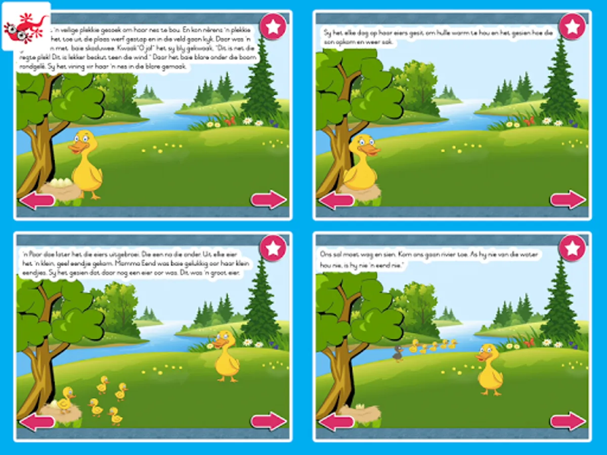 The ugly duckling childhood story in Afrikaans with colorful large illustrations, simple text, this is the perfect fairy tale series for preschoolers. Irritable small team's imaginations by little story aloud for them to read. The story can be read to you by a professional voice artist.