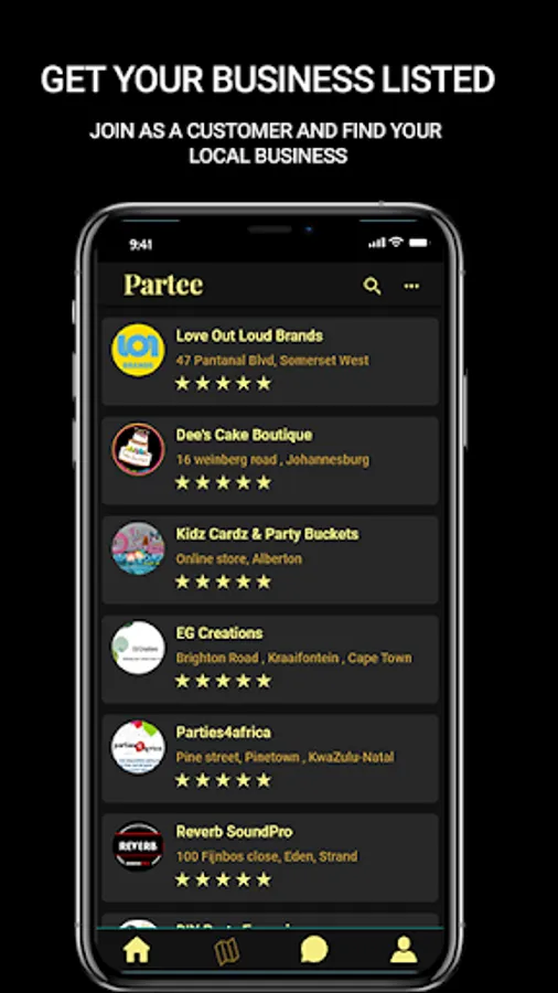 Partee is an exciting & brand new GEO Location & Listing APP specifically designed for South Africans which connects the Customer & Party supplier INSTANTLY!