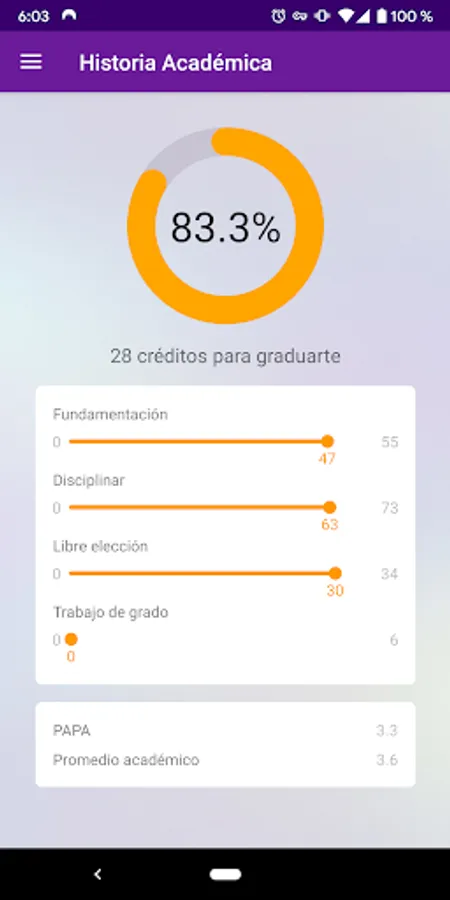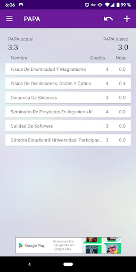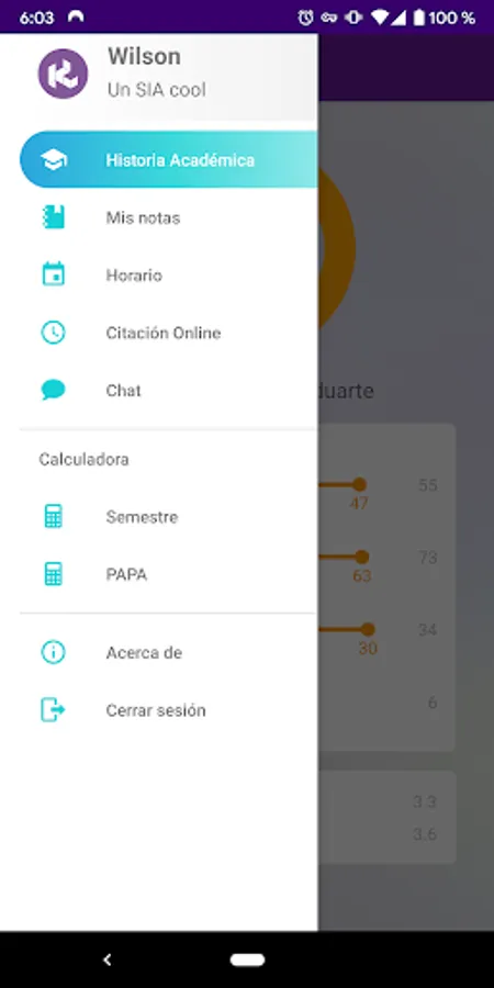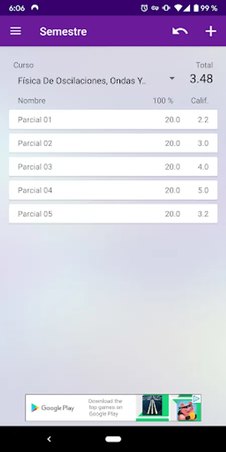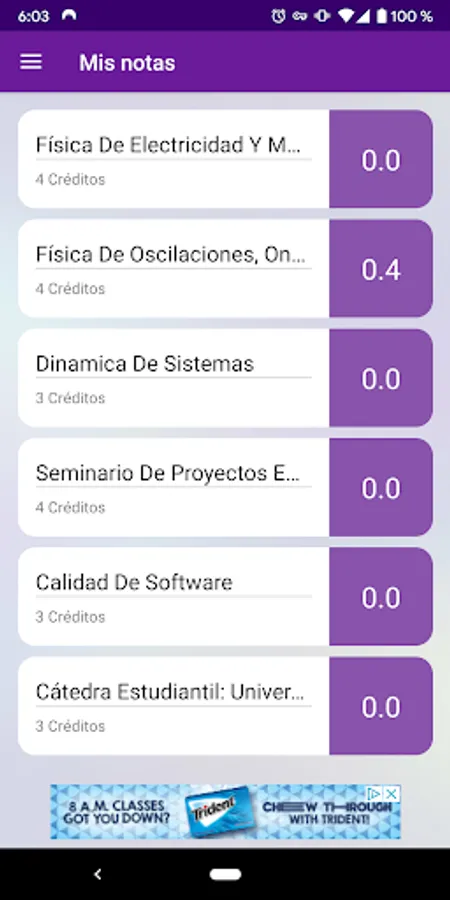 • My Grades contains the list of current materials with their accumulated and from here see more details of each subject.
