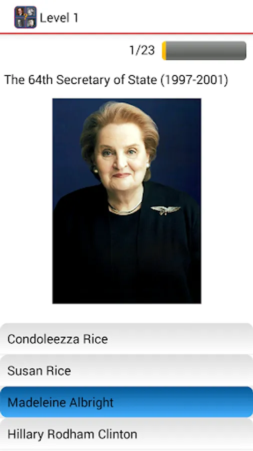 How well do you know the U.S. Secretaries of State? Did you know that the first Secretary of State was Thomas Jefferson? Or that there were five other Presidents who were Secretaries of State? What were their accomplishments? How long did they serve? Find out all you need to know in this fun and interactive app!