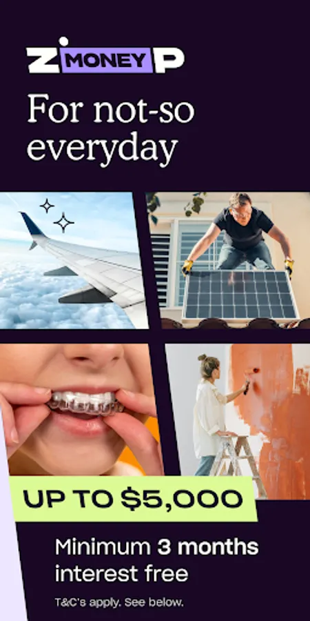 Pay for your next step in life from holidays to renos, electronics, insurance & more. Apply for up to $5,000, pay nothing on the day of purchase & get a minimum of 3 months interest free on every purchase & up to 5 years interest free at select Zip partners(2)
