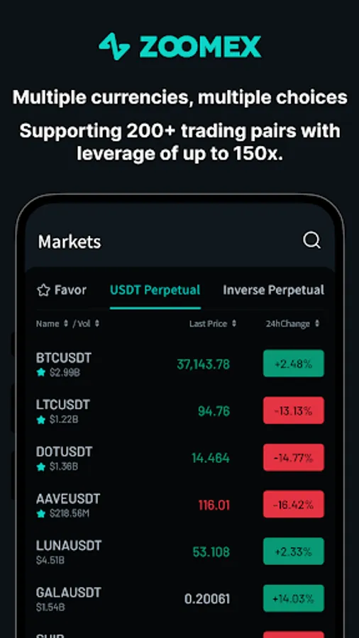 Welcome to ZOOMEX - the world's most professional digital asset trading platform, offering users derivative trading services for various assets such as Bitcoin (BTC), Ethereum (ETH), Dogecoin (DOGE), and more.
