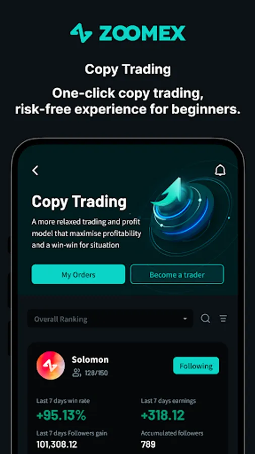 We provide users with the most user-friendly copy trading feature. Copy Trading allows users to follow professional traders worldwide. We recommend this feature for new users entering the world of digital asset trading, providing a zero-barrier, risk-free trading experience.