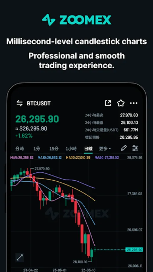 Users can engage in both long and short positions for digital assets like Bitcoin (BTC) and Ethereum (ETH). ZOOMEX also supports one-click liquidation and offers a smooth and uninterrupted trading experience with millisecond-level candlestick charts. Download now to experience seamless trading services.