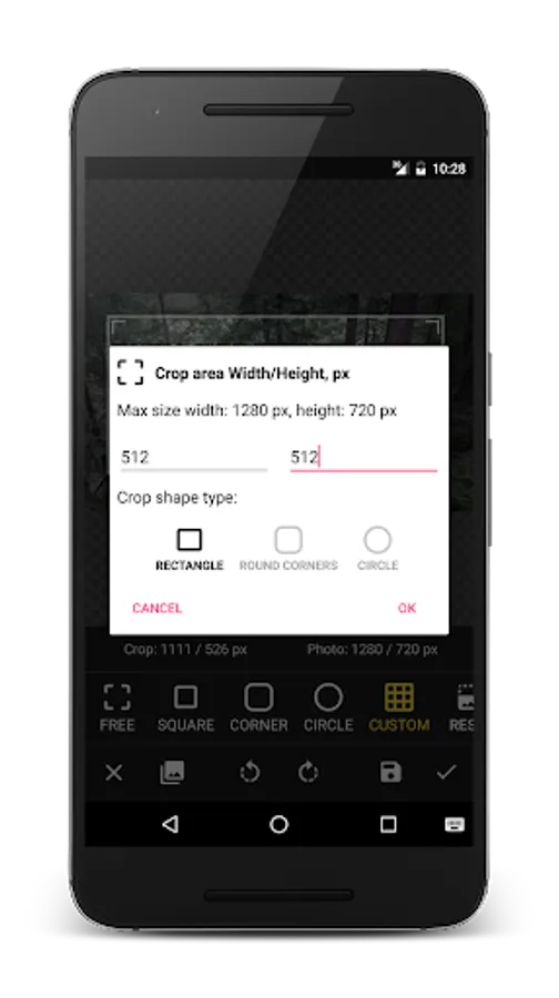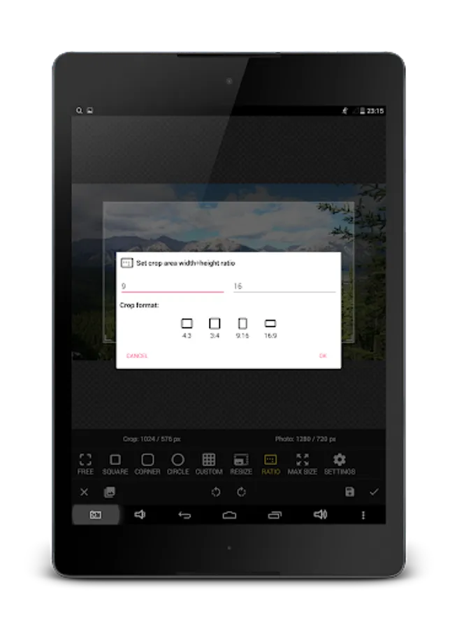 • Custom or predefined aspect ratio of the photo crop view - 4:3, 3:4, 9:16, 16:9;