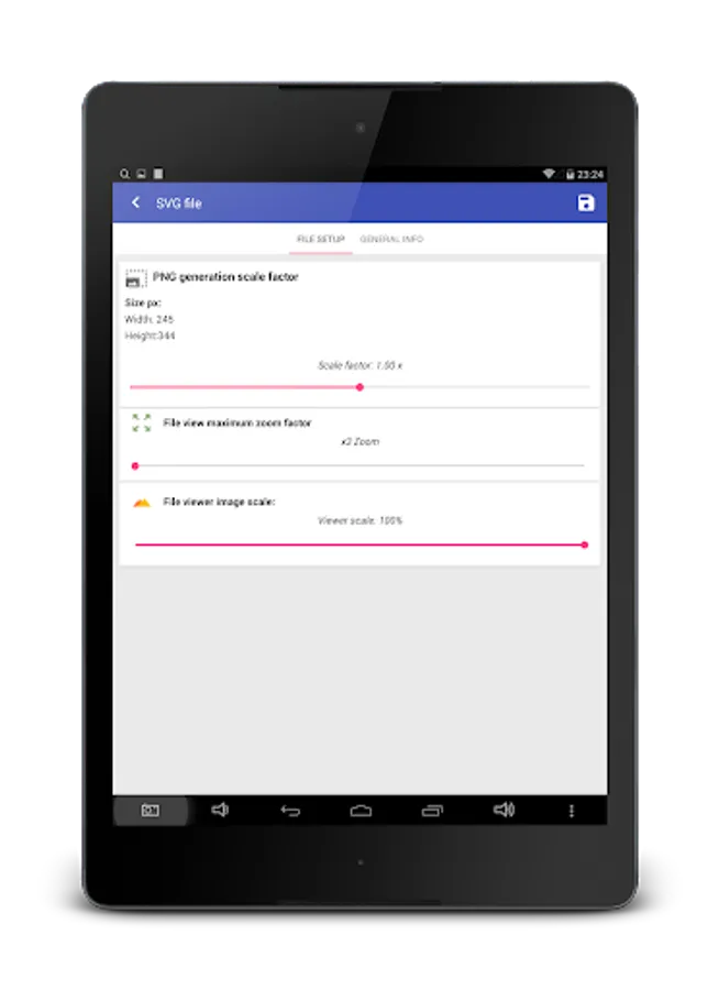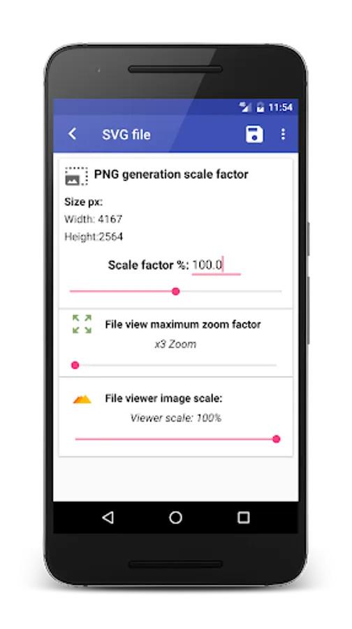 - Visualizing SVG files using your smartphone's web browser is very hard and problematic, especially when the file is on the SD Card or their size exceeds view area and you cannot zoom out. Therefore this app helps you to view even large SVG files without exceeding your screen size;