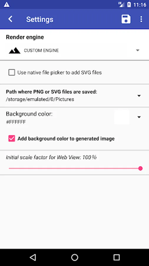 Ideal application for users who want to visualise SVG (Scalable Vector Graphics) files stored on their smartphone.