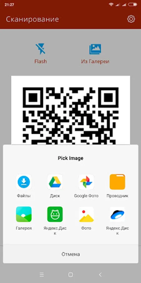 If you have a photo or a picture with a bar code, then all you need is to select a picture with a code in the application and the application will automatically scan it.