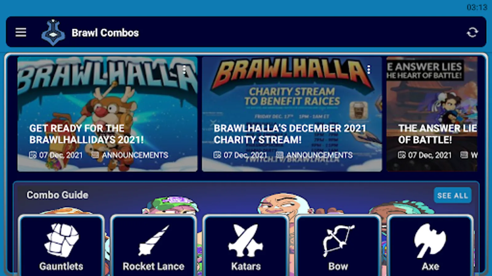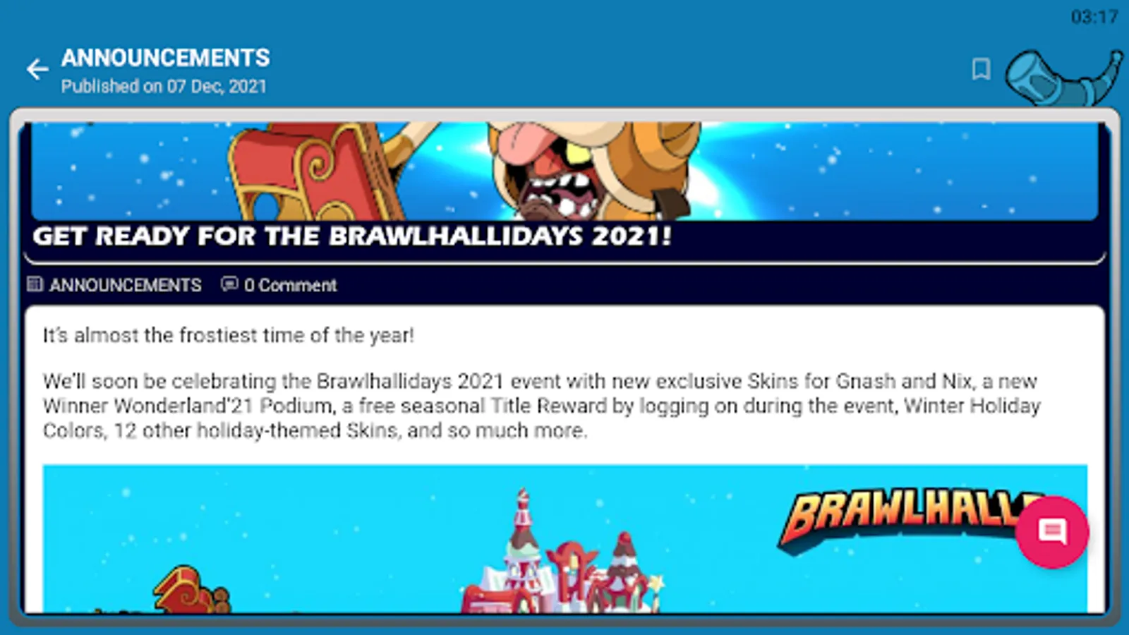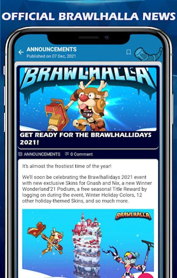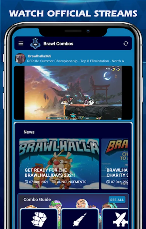* Watch streams, when the official stream is online it will be active, when not Brawlhalla365 will be displayed.