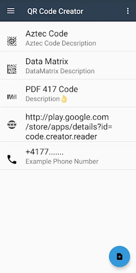 QR Code Creator is a and practical tool to create a QR Code and many other codes without advertisement.