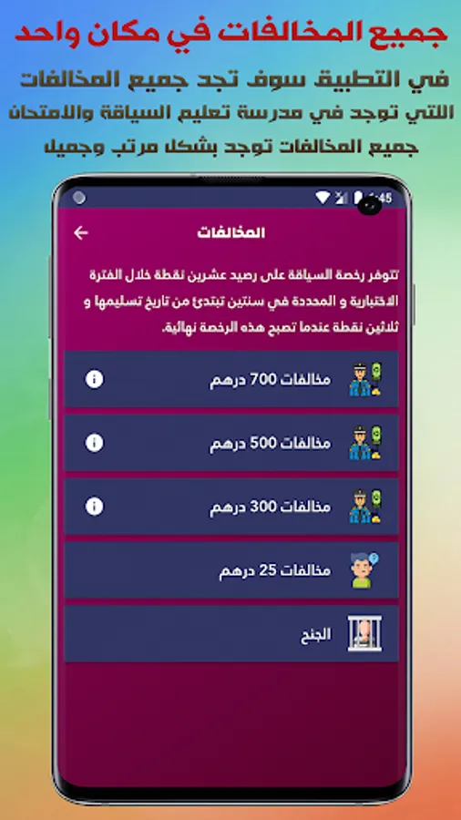 The application also enables you to test your understanding and memorization of traffic signs by passing a test for all types of traffic signs with the possibility of punctuation.