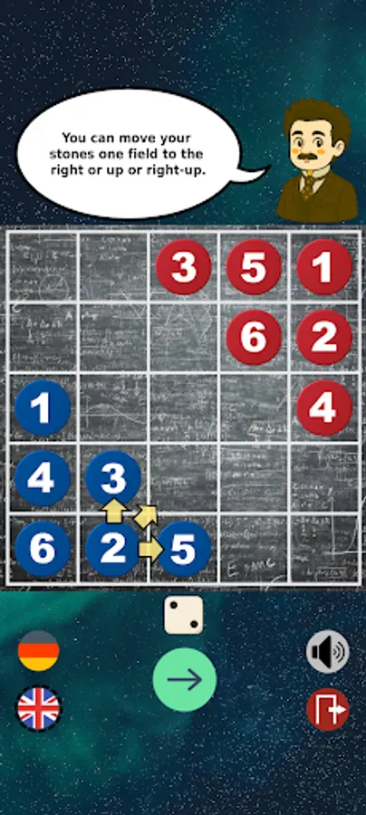 Einstein Gammon is an ingeniously simple dice board game. A single game rarely lasts longer than a minute, yet offers the excitement and depth of play usually only found in classics such as Backgammon. Albert explains the rules in a tutorial at the beginning so that you can start playing right away. He himself is then your opponent in five ascending age levels, from preschooler to celebrated scientist. You can configure the game to suit your personal preferences using the wide range of settings. The statistics provide you with a clear overview of your achievements at any time. And if anything is unclear, you will find detailed help in the main menu. The game was invented by Dr. Ingo Althöfer, who originally gave it the name "EinStein würfelt nicht!" (One stone doesn't roll!) and who approved the implementation of this app.