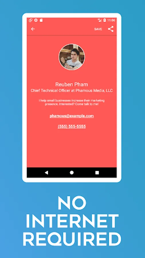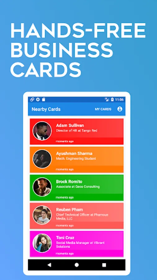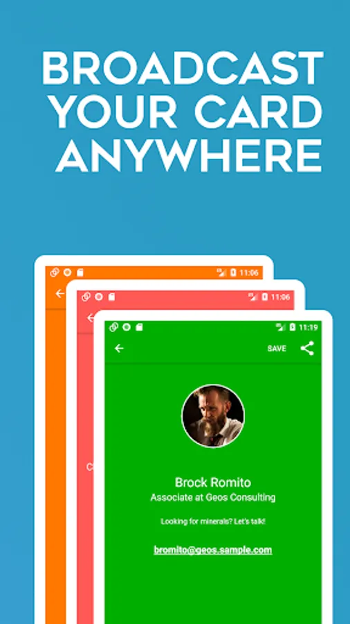 • Save the cards you find. And view them later. Build a rolodex on your phone.