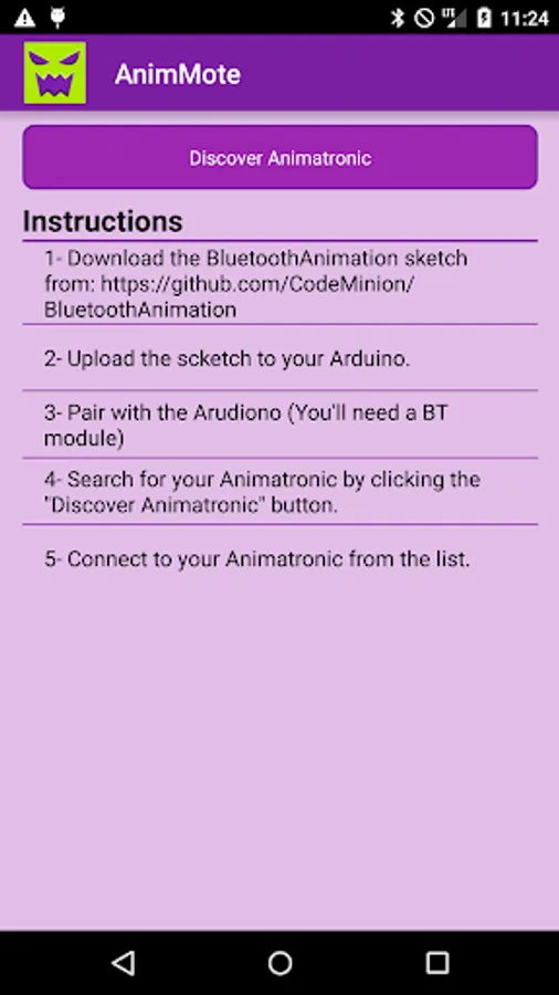 4- Search for your Animatronic by clicking the "Discover Animatronic" button.5- Connect to your Animatronic from the list.