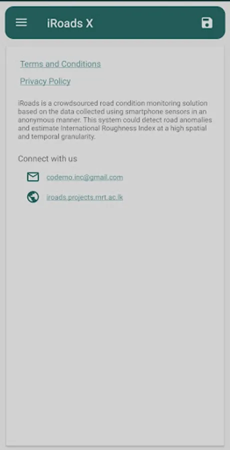 iRoads X is a crowd-sourced road condition monitoring solution based on the data collected using smartphone sensors such as a 3-axis accelerometer, magnetometer, gyroscope and GPS. This system collects data to estimate International Roughness Index (IRI) and estimate IRI values at a high spatial and temporal granularity.