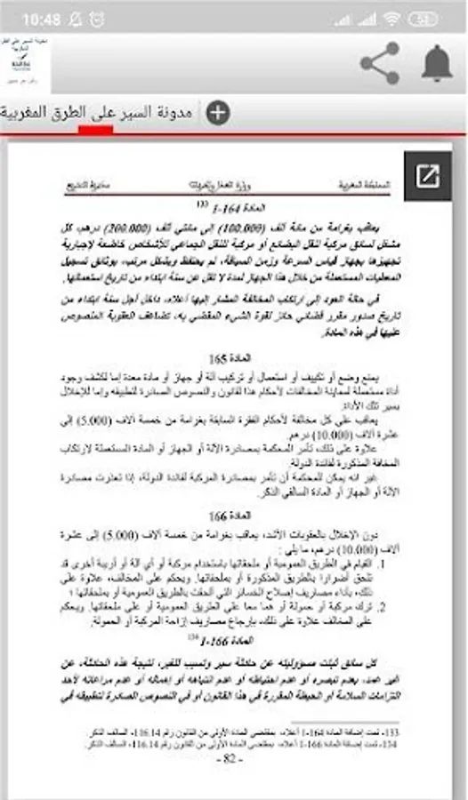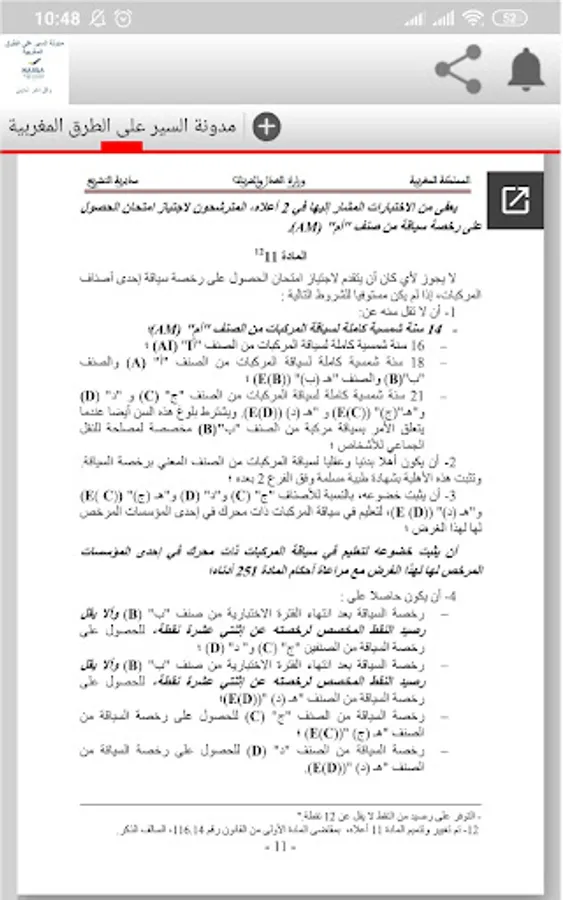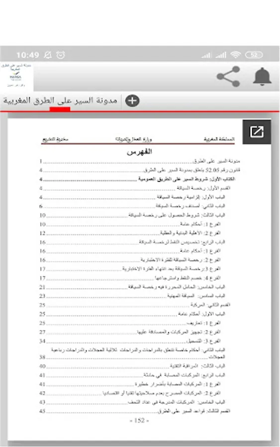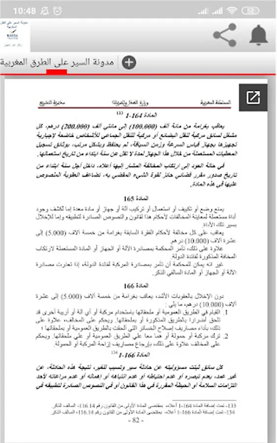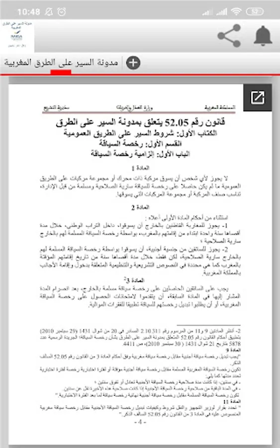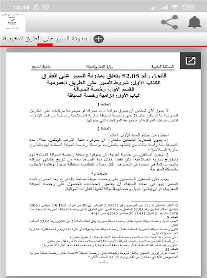 Law No. 52.05 relating to the Road Traffic Code, which entered into force on 1 October 2010, is an ambitious law that translates the collective will of all actors, stakeholders and components of civil society in order to provide the necessary conditions to preserve the lives of citizens when they use the public road. It is also a true national initiative and a mainstay of the national road safety strategy, which aims to consolidate authentic societal values of citizenship, coexistence and social peace within a modern legal framework that guarantees the right of individuals and groups to life and the safety of their movement.