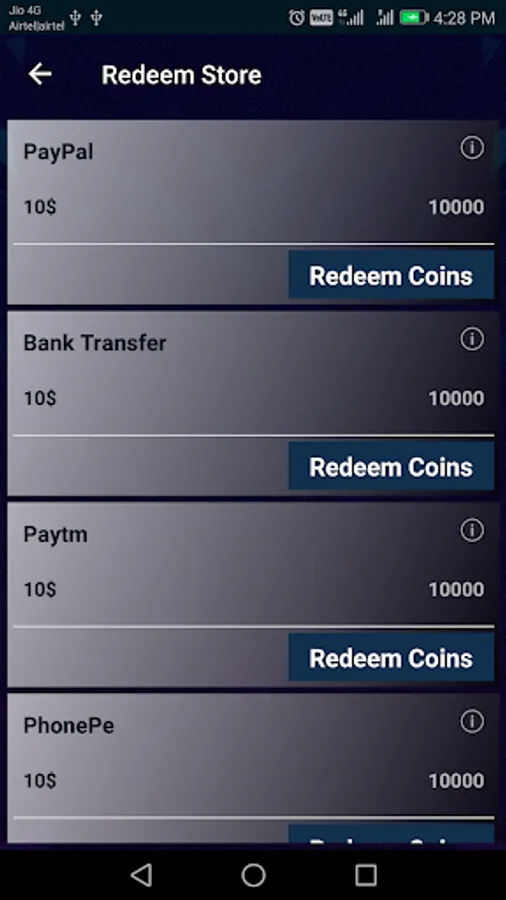 Earn coins while playing games which will be more amazing for everyone and you can buy real products from the Redeem Store or convert them into money.