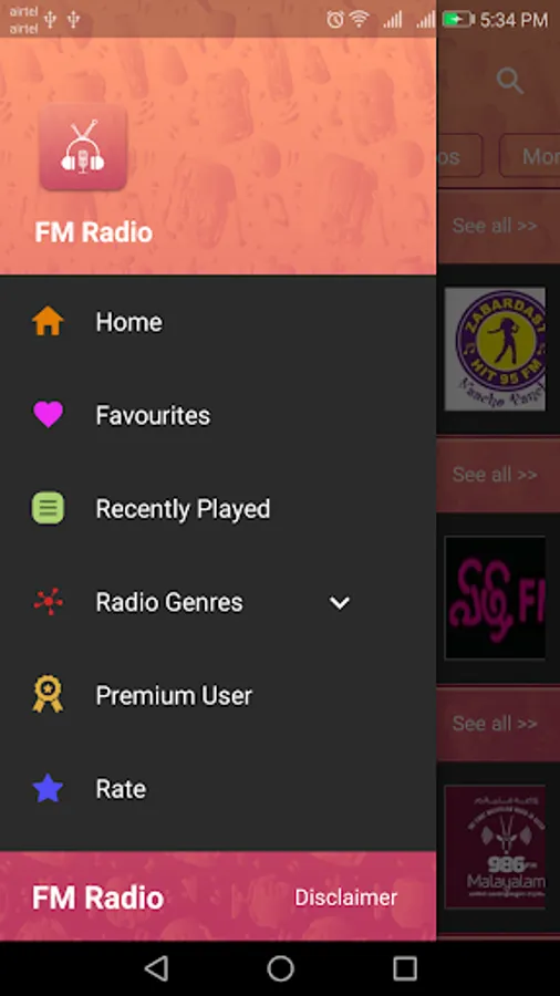 FM Radio app uses best player to play channels with low internet connection as well. The app has very nice audio visualization, which make you feel very awesome when you see the main player page.