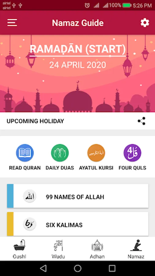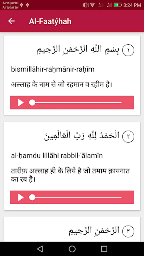 App contains Quran in Hindi and English, Daily duas, Ayatul Kursi, Sehri & Iftaari duas, Six Kalimas, Gallery and Four Quls for learning purpose and other essential things like Muslim Holidays, Hijri Calendar, Prayer times and Adhan Alarm. We can read whole Quran offline & listen online and we can set Adhan alarm by this app. We can easily learn how to perform Ghusl and Wudu step by step in Hindi and English. Information is available in Hindi as well but on some pages and we are trying to make it full Hindi and English version both.