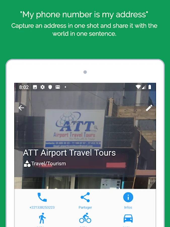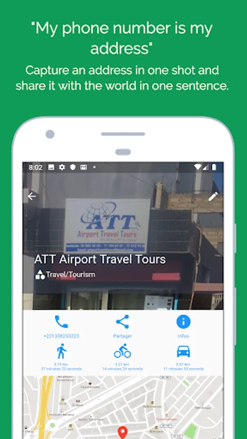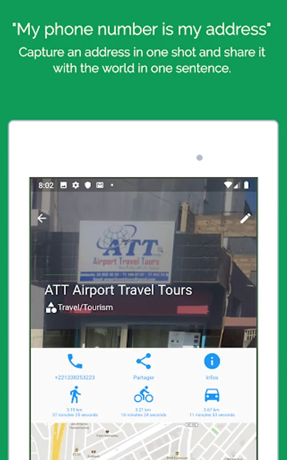 Capture an address in one shot and share it with the world in one sentence: "My phone number is my address".