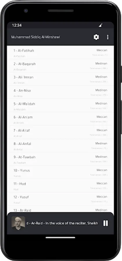 The application of the Holy Qur’an with the voice of the reciter Muhammad Siddiq Al-Minshawi allows you to hear all the surahs of the Holy Qur’an through your phone or tablet with ease and ease through one application that contains all the surahs of the Holy Qur’an without the Internet. Fans of listening to the reader Muhammad Siddiq Al-Minshawi, you will not need to pay money to download the application.