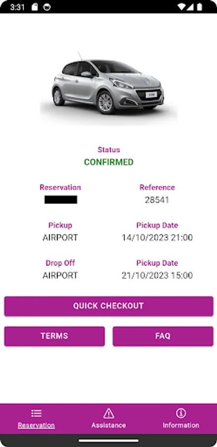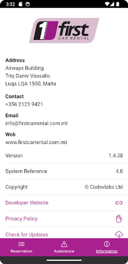 The First Car Rentals mobile app allows you to view to your reservation details and submit your checkout information to perform a fast checkout. The mobile app will also help your contact the office, local wardens and Road assistance in case of an emergency.