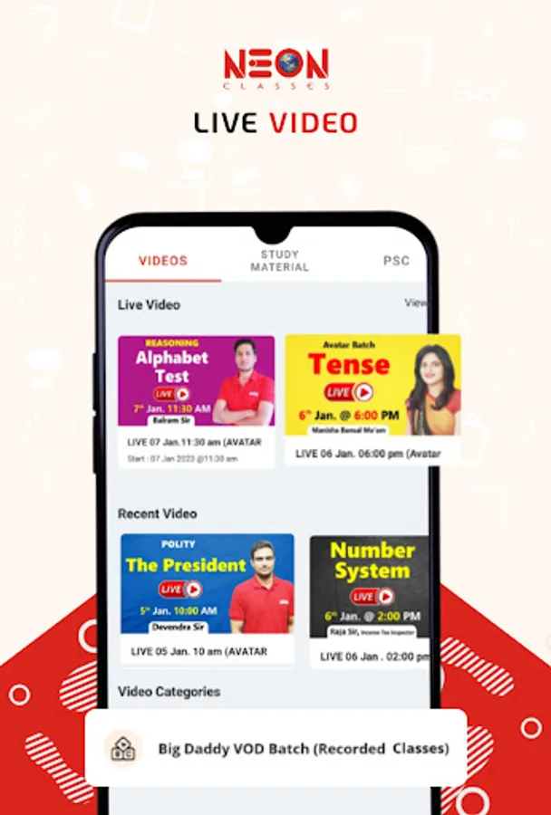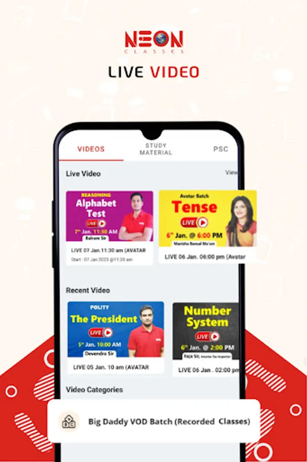 NEON CLASSES APP is India’s leading Government Jobs Preparation App helping Students to achieve their dream of Government Job (SSC, BANK, RAILWAY) by India’s Best Educators like Raja Sir(AIR-24) Income Tax Inspector, Manisha Bansal Ma’am etc.