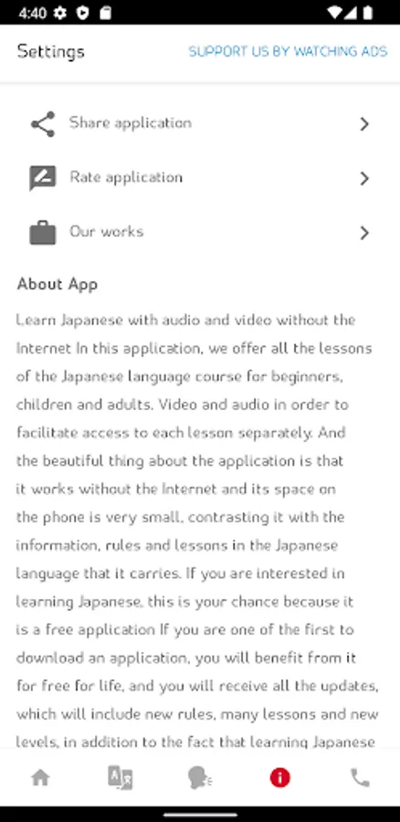 If you are one of the first to download an application, you will benefit from it for free for life, and you will receive all the updates, which will include new rules, many lessons and new levels, in addition to the fact that learning Japanese at the present time has become necessary, and that is for what Japanese-speaking countries can offer and This is for everyone who masters Japanese and by traveling and working there.