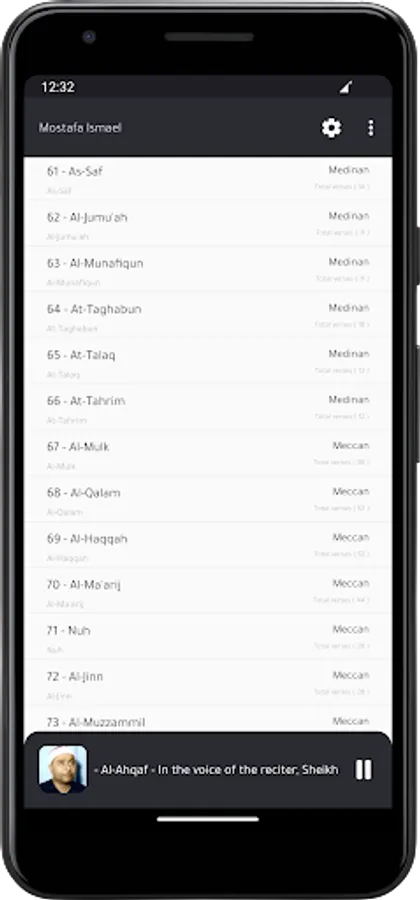 The application of the Holy Qur’an with the voice of the reciter Mostafa Ismael allows you to hear all the surahs of the Holy Qur’an through your phone or tablet with ease and ease through one application that contains all the surahs of the Holy Qur’an without the Internet. Fans of listening to the reader Mostafa Ismael , you will not need to pay money to download the application.