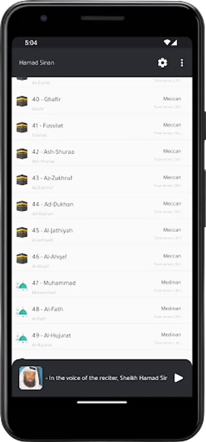 The application of the Holy Qur’an with the voice of the reciter Hamad Sinan allows you to hear all the surahs of the Holy Qur’an through your phone or tablet with ease and ease through one application that contains all the surahs of the Holy Qur’an without the Internet. Fans of listening to the reader Hamad Sinan , you will not need to pay money to download the application.