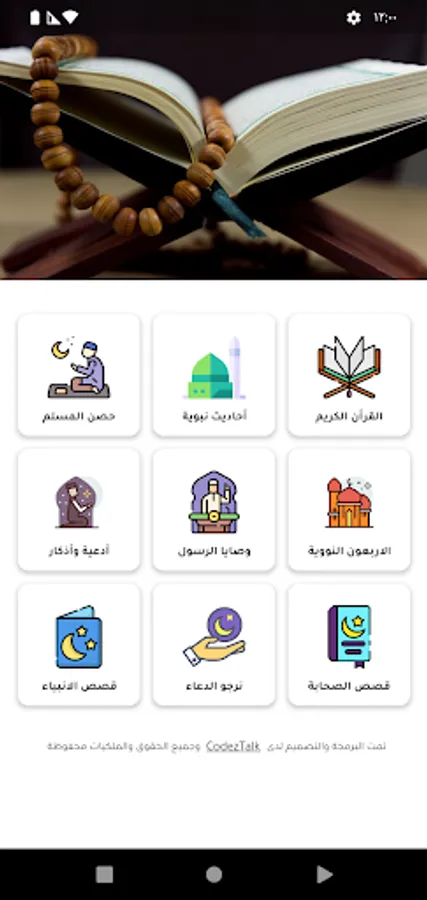 You can also read the dhikr through it, and it also contains prophetic hadiths, the nuclear forty, the fortress of the Muslim, the commandments of the Messenger, may God bless him and grant him peace, supplications and remembrances, and the application also contains the stories of the prophets and messengers and the stories of the companions