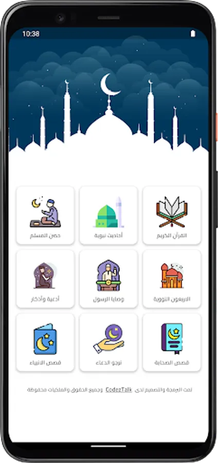 You can also read the dhikr through it, and it also contains prophetic hadiths, the nuclear forty, the fortress of the Muslim, the commandments of the Messenger, may God bless him and grant him peace, supplications and remembrances, and the application also contains the stories of the prophets and messengers and the stories of the companions