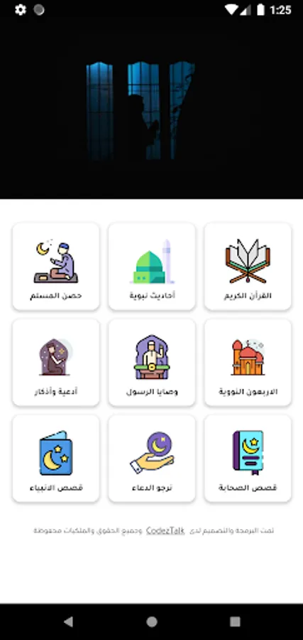 You can also read the dhikr through it, and it also contains prophetic hadiths, the nuclear forty, the fortress of the Muslim, the commandments of the Messenger, may God bless him and grant him peace, supplications and remembrances, and the application also contains the stories of the prophets and messengers and the stories of the companions