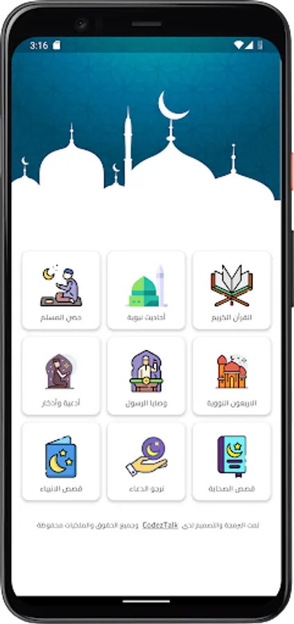 You can also read the remembrances through it, and it also contains prophetic hadiths, the nuclear forty, the Muslim fortress, the commandments of the Messenger, may God bless him and grant him peace, supplications and remembrances, and the application also contains the stories of the prophets and messengers and the stories of the companions